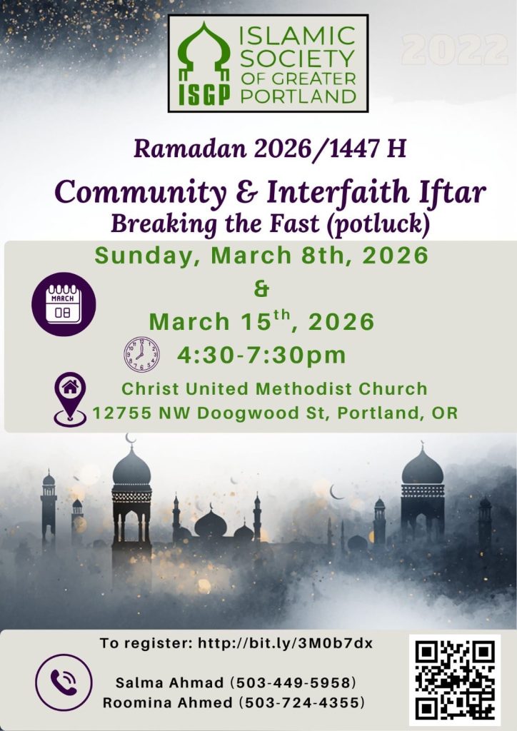 Annual Ramadan Interfaith Potluck Iftar ISGP February 15, 2026 Uncategorized ISGP Continues to bring the community together with a community wide potluck iftar. You Might Also Like ISGP Portland Clean up with SOLVE March 25, 2022 NBA Night with ISGP, Portland March 4, 2020 ISGP Family and Friends’ Movie Night March 25, 2021